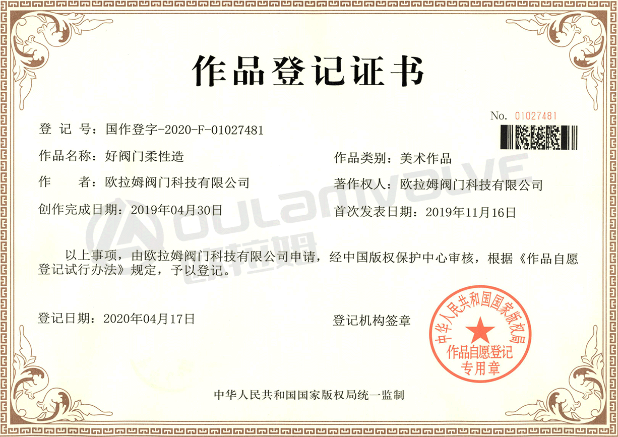 作品登記證書好閥門柔性造