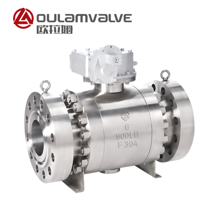 固定球閥有兩件式和三件式閥體結構,中間法蘭用螺栓連接,密封由鑲嵌在不銹鋼環中的增強聚四氟乙烯制成,鋼環背面裝有彈簧,保證閥座緊貼球體并保持密封。上下閥桿裝有聚四氟乙烯軸承,減少摩擦,操作省力。小軸底部裝有調整件,保證球體與密封圈的接合位置。全通徑:閥門的流通孔徑與管道內徑一致,以便清洗管道。閥體頂部和底部設有排水孔,可以檢查閥座是否泄漏。當閥門在工作過程中處于全開或全閉狀態時,可以將中間腔的壓力去掉,直接更換填料。